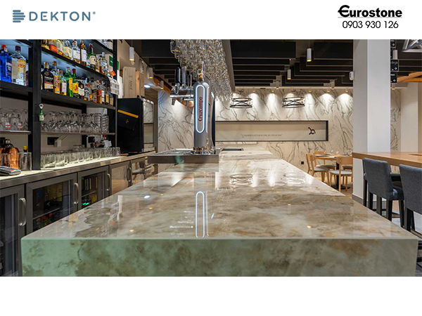 - Chống thấm, chống bán bẩn tốt: Dekton không chứa nhựa, không xốp nên có khả năng chống thấm, chống bám bẩn cực cao và dễ dàng làm sạch bằng chất tẩy rửa thông thường.